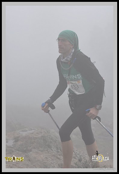 El km 30 lo hago en 3:45, aquí empieza el monte, y la lluvia, aunque todo el mundo me ha comentado que en Canarias hace mucho calor y que no llueve, -simplemente sirimiri africano, pero no moja- ¡pues yo tengo frio y me estoy empapando! menos mal que llevo ropa por si acaso y me abrigo, y el maratón, Tunte, en 6:00. En este punto, se retira bastante gente con hipotermia. El frio canario es seco, a mi me recuerda a la sensación que sientes cuando pasas por la sección de yogures del Eroski.